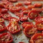 เพื่อให้มะเขือเทศมีรสชาติดีเทียบเท่ากับความสด จึงหั่นเป็นชิ้น มะเขือเทศที่คัดสรรแล้ว เนื้อแน่น เปลือกหนา จะถูกล้าง ผึ่งให้แห้ง แล้วหั่นเป็นชิ้นกลมขนาด 10 มิลลิเมตร วิธีนี้จะช่วยป้องกันไม่ให้ชิ้นมะเขือเทศกระจายตัว