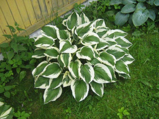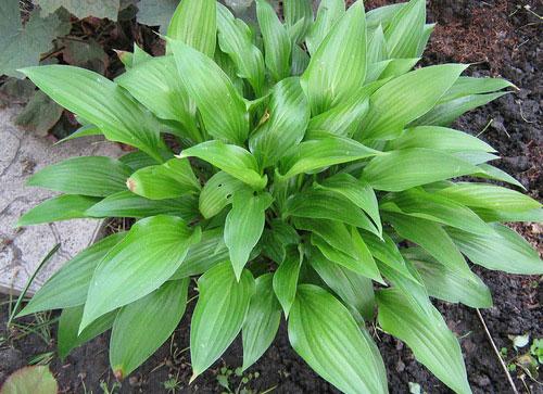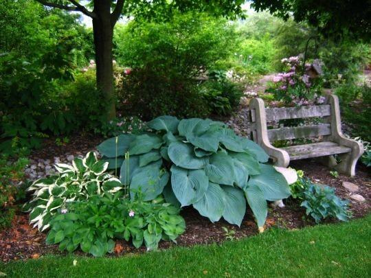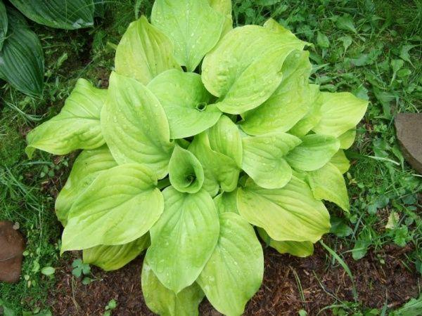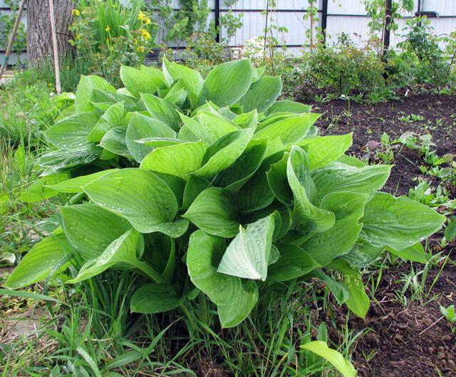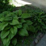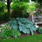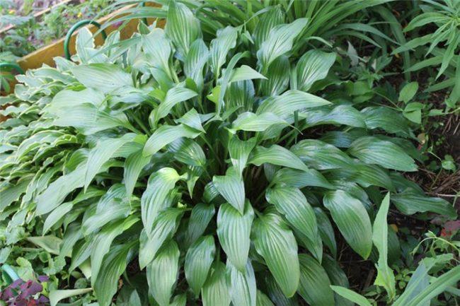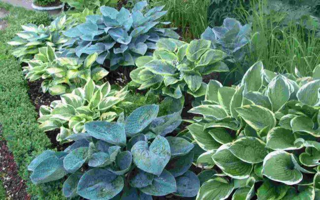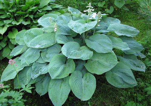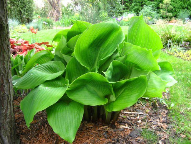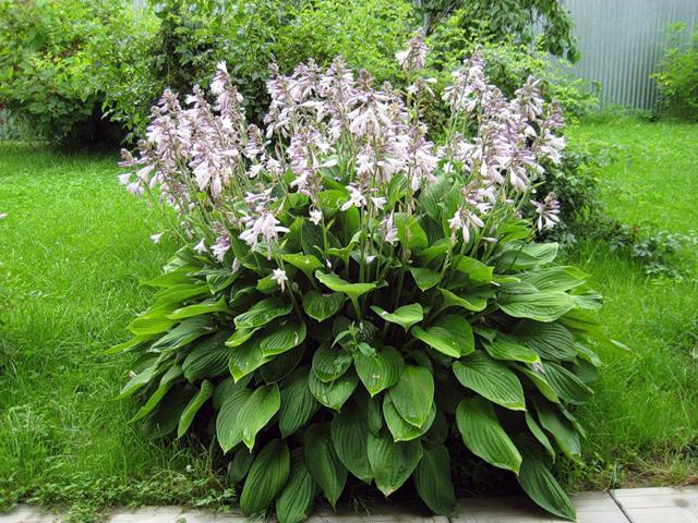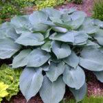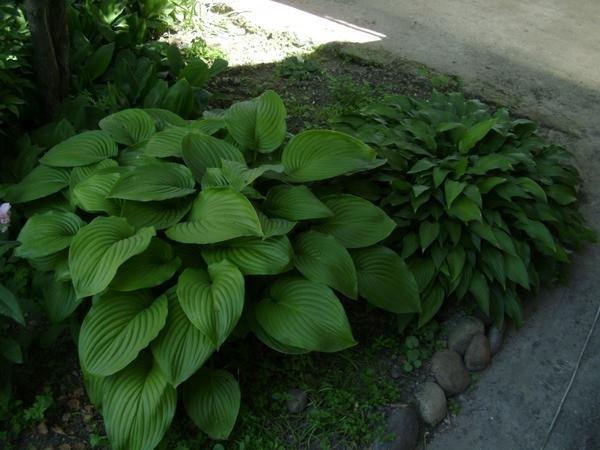 โฮสต้าทรงรีปลูกในบริเวณที่มีร่มเงาในสวน
