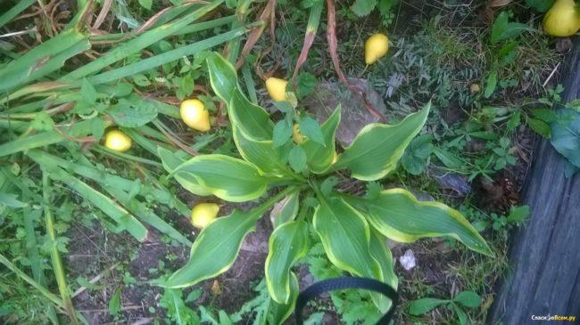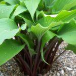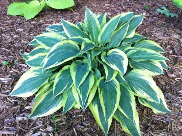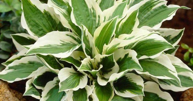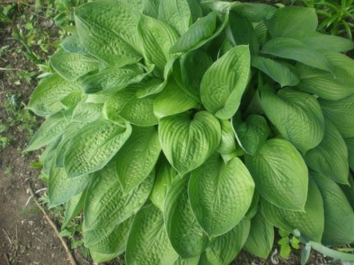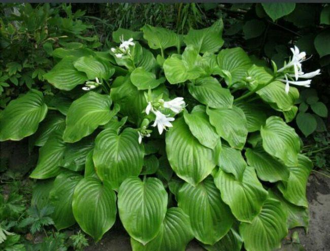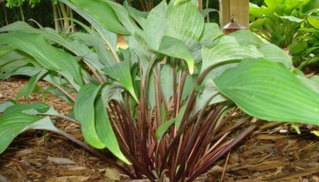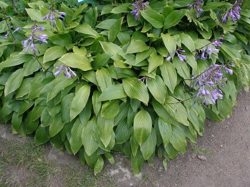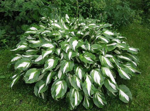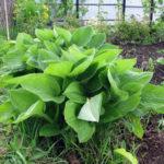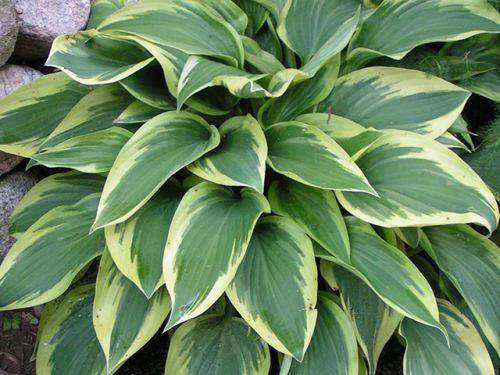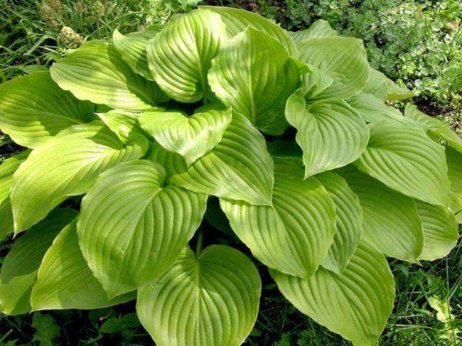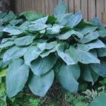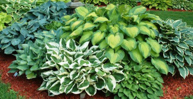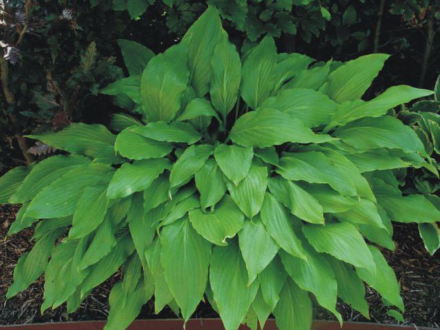 โฮสต้าทรงรีปลูกในบริเวณที่มีร่มเงาในสวน
