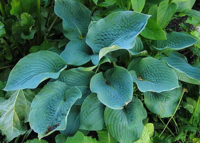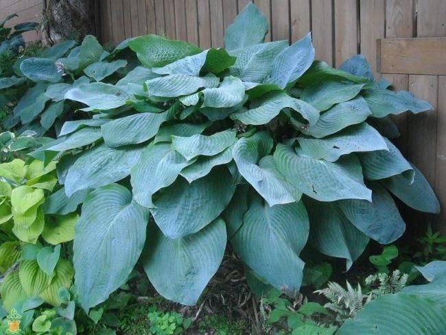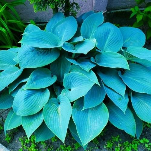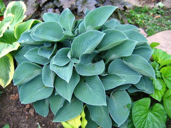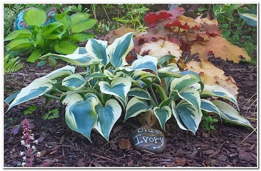 โฮสต้าบลูไอวอรี่ปลูกในบริเวณที่มีร่มเงาบางส่วนในสวน