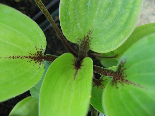 โฮสตาพันธุ์นี้มีความสูง 40 เซนติเมตร ใบเป็นรูปหัวใจสีเหลือง ขอบใบตกแต่งด้วยขอบสีเขียวแคบๆ ก้านใบสีแดง