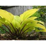 ต้นที่โตเต็มที่สูง 70 เซนติเมตร กว้าง 120 เซนติเมตร ตรงกลางใบมีสีเขียวอมเหลือง และมีแถบสีเขียวเข้มตามขอบ