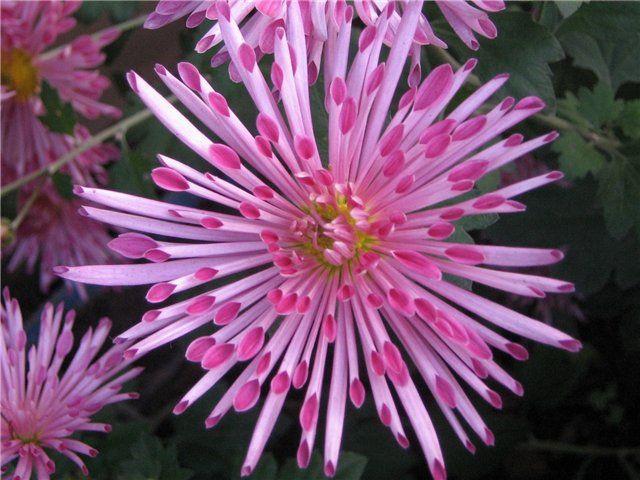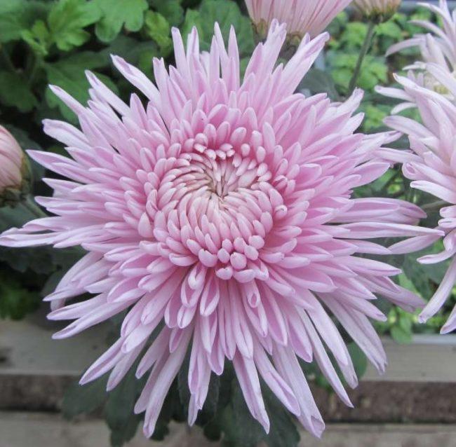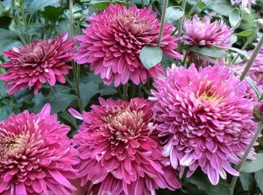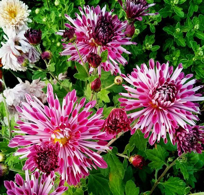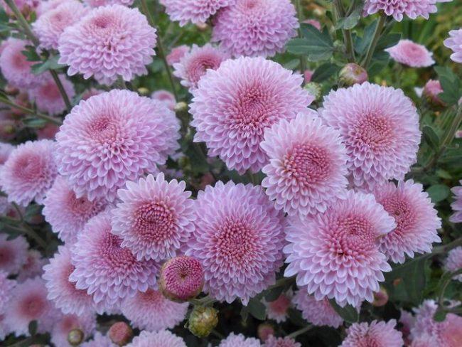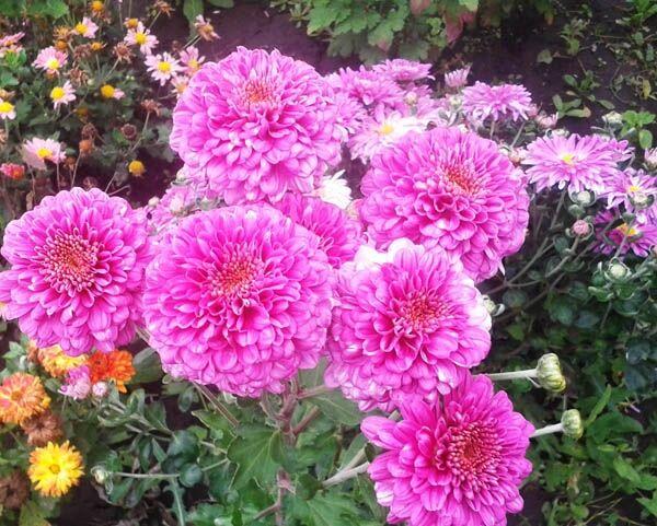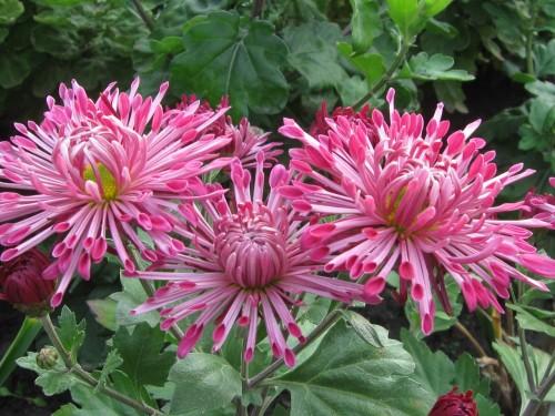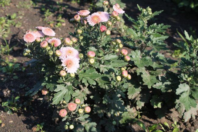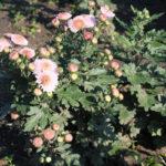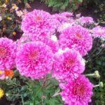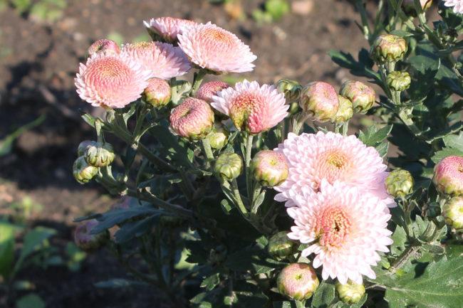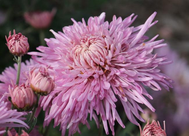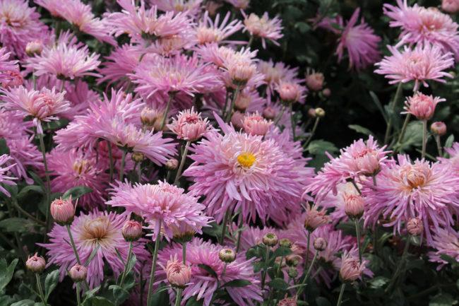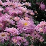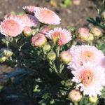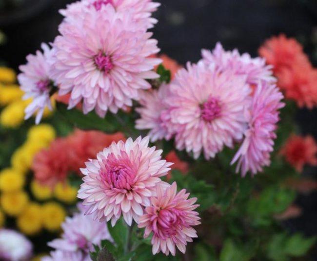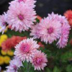 ดอกเบญจมาศที่มีกลีบดอกสีชมพูช่วยเพิ่มความละเอียดอ่อนให้กับสวนฤดูใบไม้ร่วง
