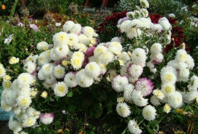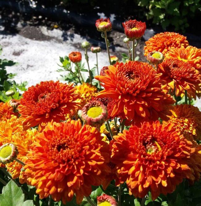 ดอกเบญจมาศเตี้ยๆ นำมาใช้เป็นขอบแปลงและปลูกในภาชนะสวยงาม
