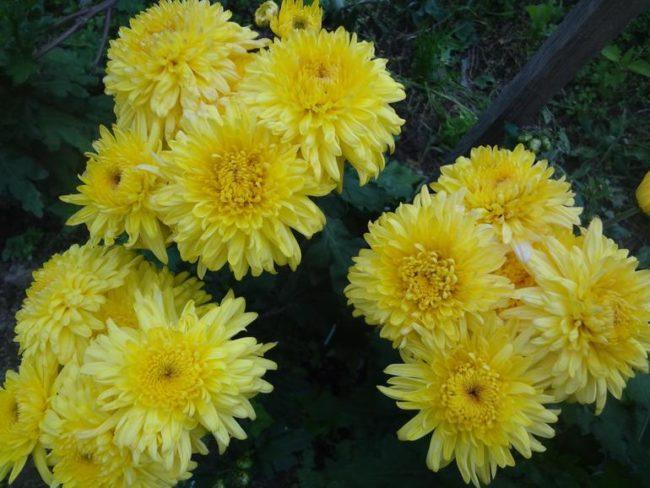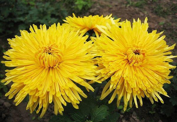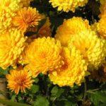 พุ่มไม้สูงได้ถึง 80 เซนติเมตร ดอกตูมสีเหลือง ดอกมีขนาดใหญ่ เส้นผ่านศูนย์กลาง 10 เซนติเมตร ดอกเบญจมาศเกาหลี "Solnyshko" (แสงแดด) ประดับสวนในฤดูใบไม้ร่วง