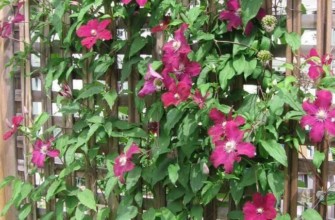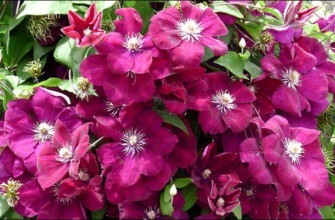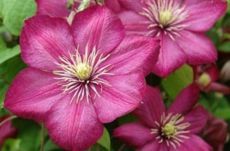 ไม้เลื้อยจำพวกเถา Clematis Ville de Lyon เป็นไม้ที่สวยงามที่