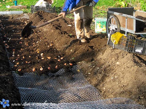 ตาข่ายยังใช้สำหรับปลูกหัวทิวลิปอีกด้วย โดยวางตาข่ายไว้ตามขอบหลุม เติมทรายลงไปที่ก้นหลุม วางหัวทิวลิปไว้ด้านบน และกลบดินที่เตรียมไว้ ข้อเสียของวิธีนี้คือหนูอาจทำลายตาข่ายได้