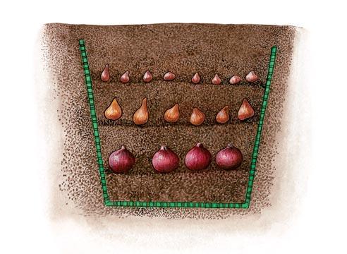 ข้อดีของวิธีนี้คือเมื่อถึงฤดูหนาวก็ไม่จำเป็นต้องขุดทิวลิปออกจากแปลงดอกไม้ แต่จะผ่านฤดูหนาวได้ดีหากปลูกเป็นชั้นๆ