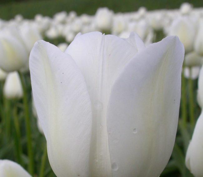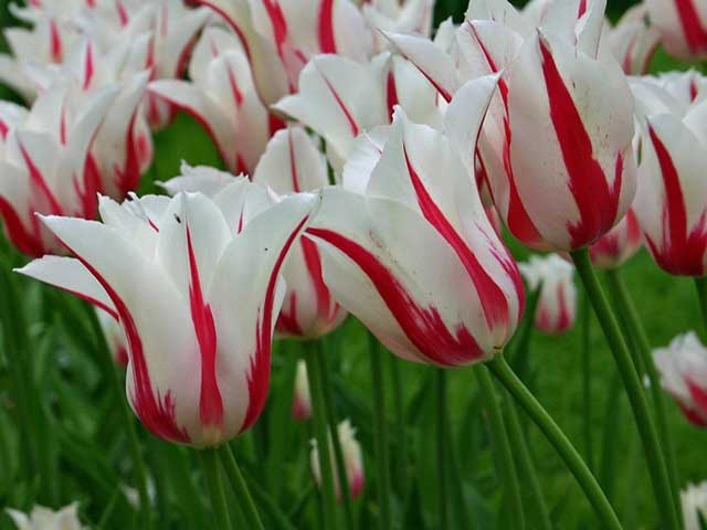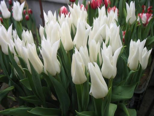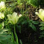 ดอกไม้เหล่านี้ดูสง่างามมากในสวน นักเพาะพันธุ์ได้พัฒนาทิวลิปหลายสายพันธุ์ที่มีดอกตูมสีขาว ทิวลิปแต่ละสายพันธุ์มีระยะเวลาออกดอกและรูปทรงช่อดอกที่แตกต่างกัน