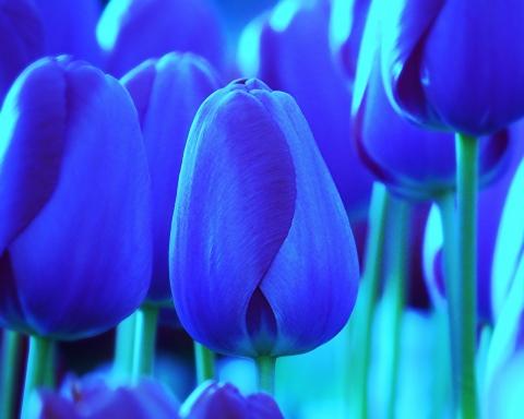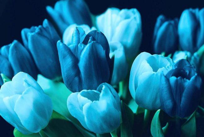 น่าเสียดายที่ทิวลิปสีฟ้าไม่มีอยู่ในธรรมชาติ อย่างไรก็ตาม ตลาดดอกไม้ขายทิวลิปที่มีดอกตูมสีฟ้า ซึ่งโดยทั่วไปจะเป็นทิวลิปสีขาวที่ทาด้วยสีอะคริลิกเรืองแสง