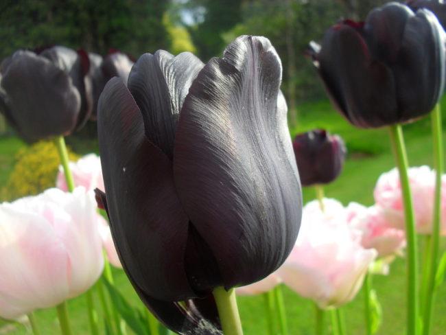 นี่คือชื่อเรียกดอกทิวลิปที่มีดอกสีม่วงเข้มหรือสีน้ำตาลแดง ไม่มีพันธุ์ใดที่มีดอกสีดำสนิท ความเข้มของสีขึ้นอยู่กับแสง รูปทรงและขนาดของดอกตูมจะแตกต่างกันไปตามพันธุ์