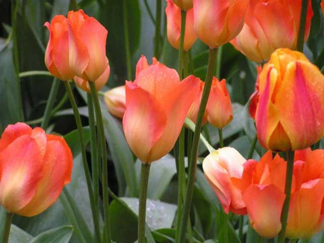 พืชจะเริ่มบานในช่วงปลายเดือนเมษายน ทิวลิปที่บานกลางจะแบ่งออกเป็นสองกลุ่ม
